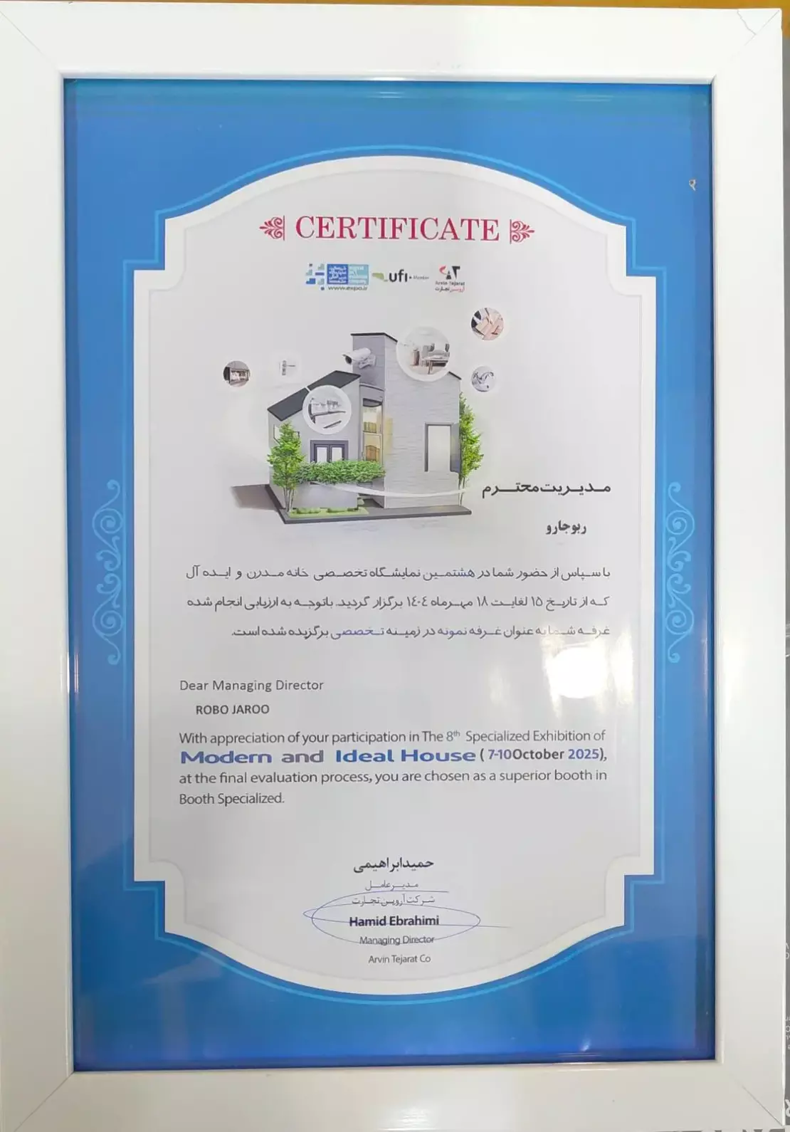 افتخاری بزرگ ربوجارو غرفه برتر نمایشگاه خانه مدرن مشهد